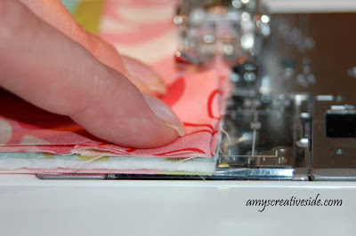 Nice tutorial, Amy. Great photos! When I sew my binding on I usually position it with the raw edges about 1/8 inch away from the raw edge of the quilt. It makes for a fuller, more stuffed binding. I like your pinching the ends way of doing the corners, too. I will pass your blog on to my new sewing students who want to know how to finish the final strips. That's way beyond the scope of my beginning quiltmaking class. :-)