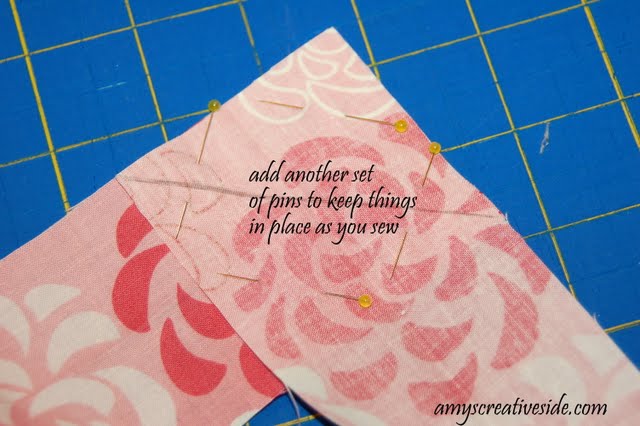 Here’s a closer look – carefully pin, and mark a line corner to corner.