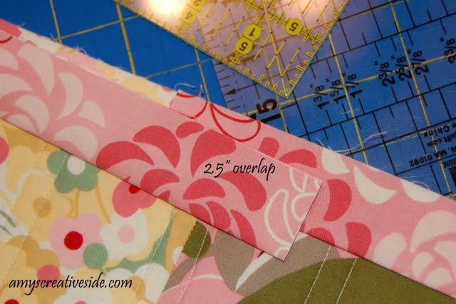 With your ruler, measure and mark 2 1/2″ of overlap. I use the edge of my ruler – you might take a pencil and mark it.