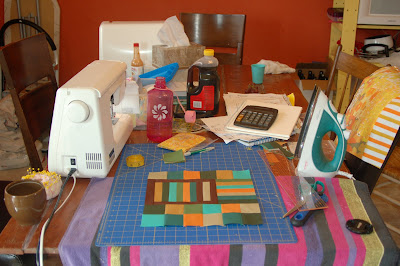 And just in case you were wondering – here’s the kitchen table while I’m busy at work! Keeping it real :) My ironing board has broken – so “yes, I iron on a towel at the table. . . “On the right, draped over the chair is my wonky log cabin for a Notion or Two – it needs a bird. And then I will post properly :)